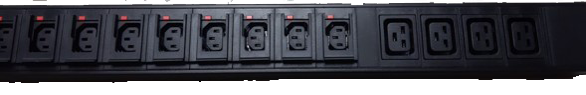 - Vertically mounted power outlet combination of standard IEC C13 and IEC C19 compliant receptacles.